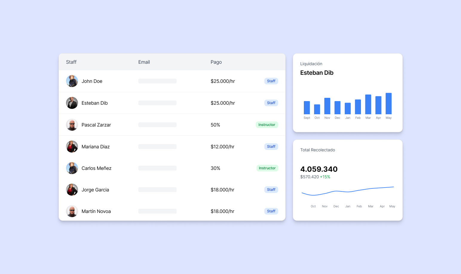 Gasta menos tiempo coordinando y enfócate en hacer crecer tu centro deportivo. Gestionamos horarios, asistencia de tus clientes, planes de sesiones y cobros online.